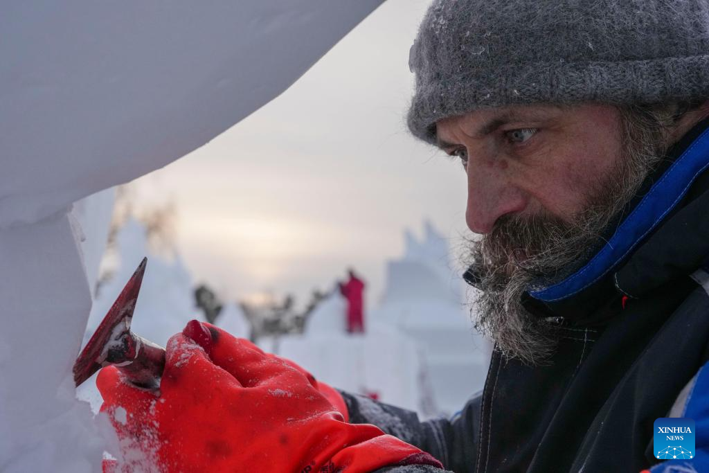 HARBIN, 10 enero, 2026 (Xinhua) -- Imagen del 9 de enero de 2026 de un concursante ruso creando una escultura de nieve en la sede de la Exposición de Nieve de la Isla del Sol, en Harbin, en la provincia de Heilongjiang, en el noreste de China. Un concurso de esculturas de nieve de cuatro días de duración concluyó aquí el viernes, con la participación de 25 equipos de 13 países. (Xinhua/Wang Jianwei)