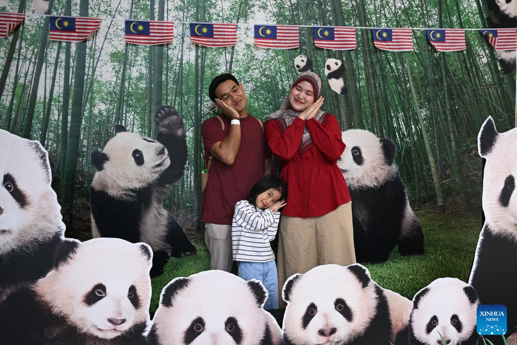 KUALA LUMPUR, 10 enero, 2026 (Xinhua) -- Una familia posa para fotografías con decoraciones con temática de pandas en el Zoológico Negara, en Selangor, Malasia, el 10 de enero de 2026. Los pandas gigantes de China "Chenxing" y "Xiaoyue", actualmente prestados a Malasia, se presentaron oficialmente al público aquí el sábado. (Xinhua/Cheng Yiheng)