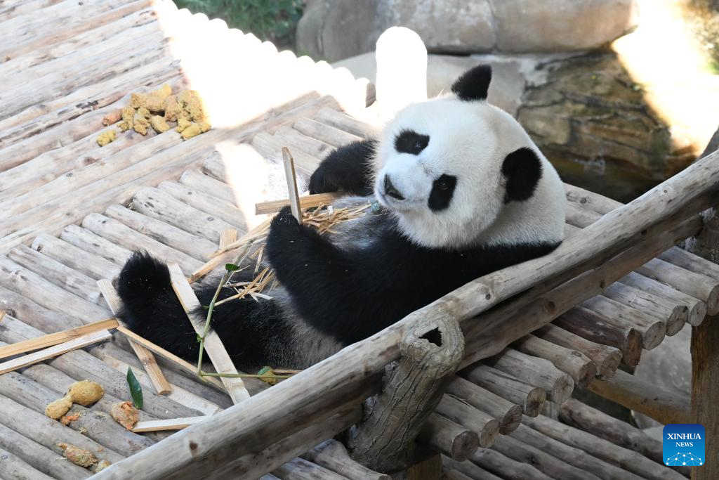 KUALA LUMPUR, 10 enero, 2026 (Xinhua) -- La panda gigante "Xiaoyue" es vista en el Zoológico Negara, en Selangor, Malasia, el 10 de enero de 2026. Los pandas gigantes de China "Chenxing" y "Xiaoyue", actualmente prestados a Malasia, se presentaron oficialmente al público aquí el sábado. (Xinhua/Cheng Yiheng)