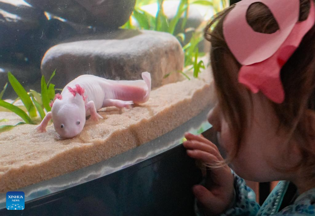 VANCOUVER, 12 enero, 2026 (Xinhua) -- Imagen del 11 de enero de 2026 de una niña observando un ajolote durante la exposición "Ajolotes Increíbles" en el Acuario de Vancouver, en Vancouver, Columbia Británica, Canadá. La nueva exposición permanente del Acuario de Vancouver, inaugurada el domingo, presenta múltiples hábitats y pantallas interactivas que destacan la biología única y las capacidades regenerativas de los ajolotes, un anfibio en peligro de extinción originario de México. (Xinhua/Liang Sen)