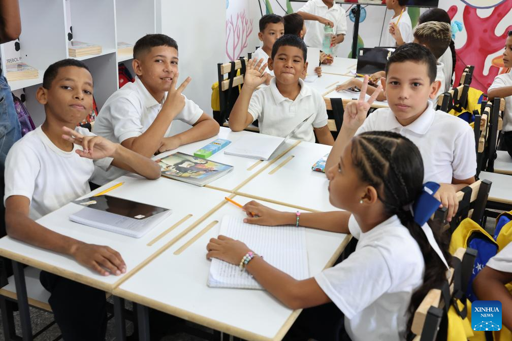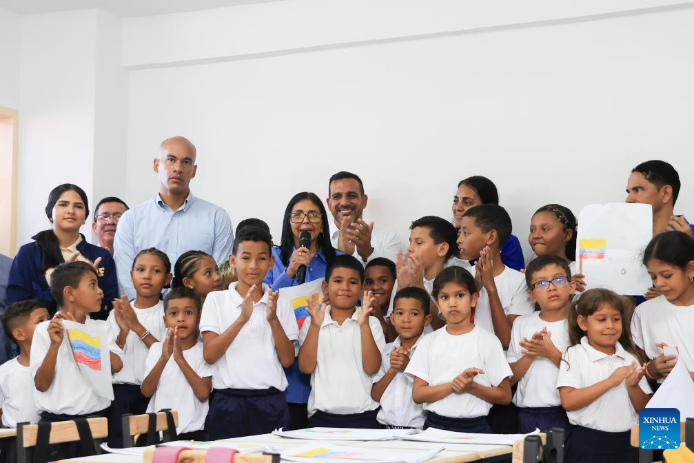 Imagen proveída por la Presidencia de Venezuela de estudiantes reaccionando durante la inauguración del curso escolar, en Catia la Mar, estado La Guaira, Venezuela, el 12 de enero de 2026. La presidenta encargada de Venezuela, Delcy Rodríguez, aseguró el lunes que en el país sudamericano "hay un gobierno que manda" y que avanza en las relaciones internacionales con respeto. (Xinhua/Presidencia de Venezuela)
