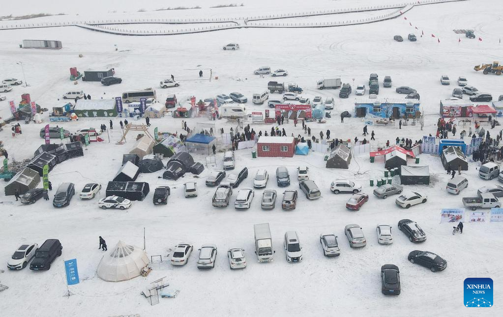 QIQIHAR, 12 enero, 2026 (Xinhua) -- Vista aérea tomada con un dron el 12 de enero de 2026 de turistas visitando una feria de aldea durante un festival de acampada, en la ciudad de Qiqihar, en la provincia de Heilongjiang, en el noreste de China, el 12 de enero de 2026. El festival de acampada de una semana de duración se inauguró aquí el lunes, donde los entusiastas de acampar y los turistas de toda China pueden experimentar el encanto único de acampar y las costumbres populares locales en un frío gélido. (Xinhua/Li Nan)