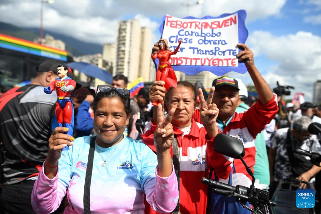 CARACAS, 13 ene (Xinhua) -- El sector transporte venezolano se movilizó hoy martes con una concentración y caravana en la ciudad de Caracas, en apoyo a la liberación del presidente Nicolás Maduro y de su esposa, Cilia Flores, capturados por Estados Unidos el pasado 3 de enero.