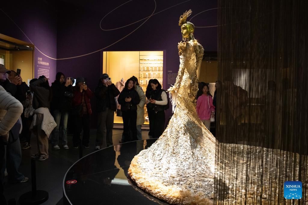 CHENGDU, 14 enero, 2026 (Xinhua) -- Imagen del 13 de enero de 2026 de personas visitando la exposición "Hilo de Oro: El Arte de Vestir desde el Norte de Africa hasta el Este de Asia" en el Museo de Chengdu, en Chengdu, en la provincia de Sichuan, en el suroeste de China. La exposición presenta más de 200 piezas (conjuntos) de artefactos textiles con hilo de oro procedentes de siete instituciones culturales francesas, junto con valiosas colecciones de ocho museos y organizaciones de patrimonio cultural chinos. (Xinhua/Xu Bingjie)