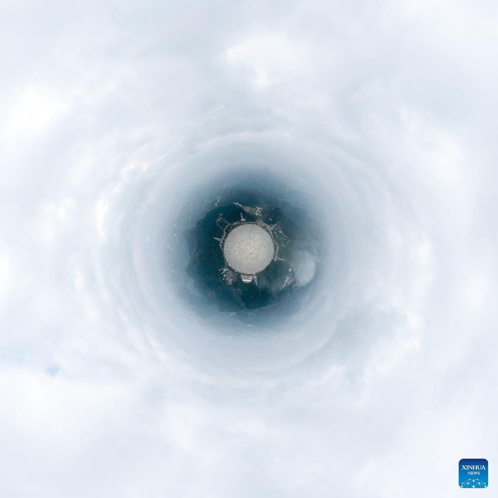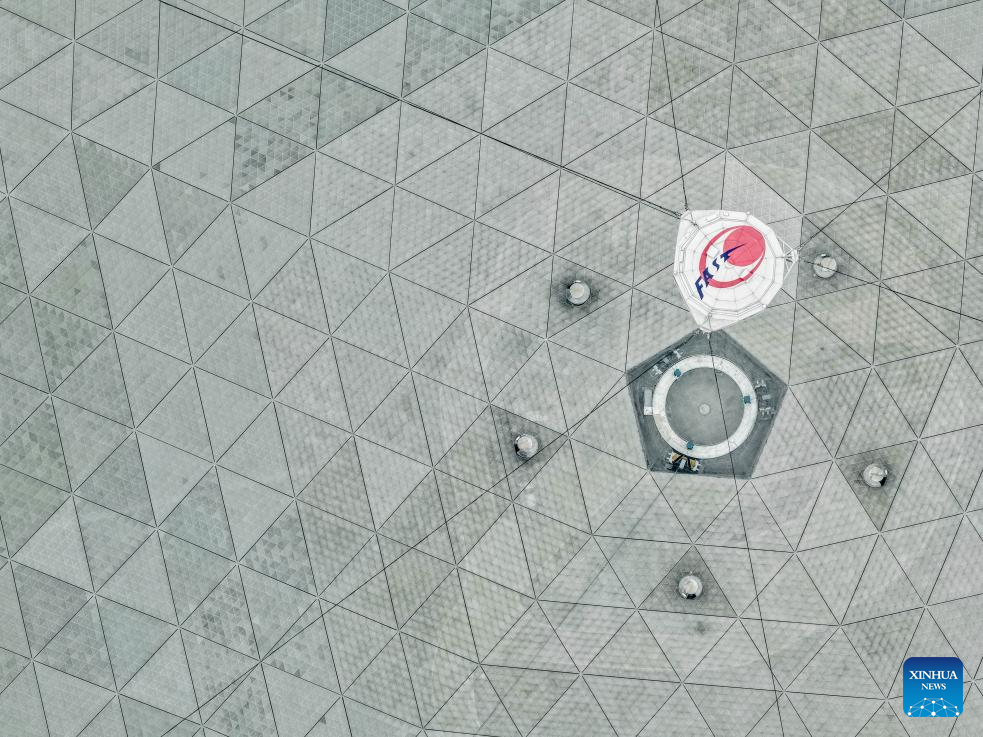 GUIYANG, 16 enero, 2026 (Xinhua) -- Vista aérea tomada con un dron el 16 de enero de 2026 de la cabina de alimentación del radiotelescopio esférico de apertura de 500 metros (FAST, por sus siglas en inglés) de China en mantenimiento, en la provincia de Guizhou, en el suroeste de China. Mediante el estudio de los datos proporcionados por las observaciones del gigantesco radiotelescopio de China, ubicado en la provincia de Guizhou, en el suroccidente del país, un equipo internacional de investigadores ha descubierto nuevas y convincentes evidencias que respaldan el origen en un sistema binario de al menos algunas ráfagas rápidas de radio, uno de los fenómenos más enigmáticos de la astrofísica moderna. (Xinhua/Ou Dongqu)
