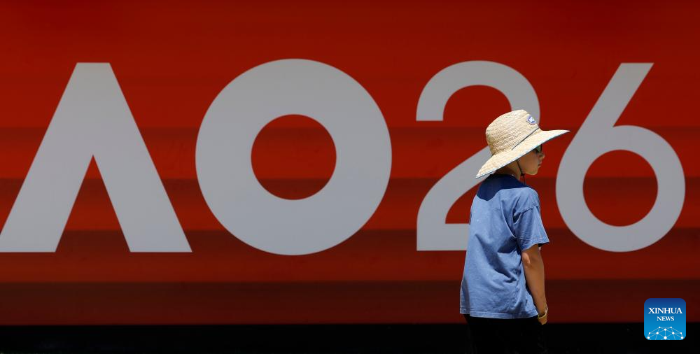 MELBOURNE, 17 enero, 2026 (Xinhua) -- Un niño camina frente al logotipo del torneo de tenis Abierto de Australia 2026 en el Melbourne Park, en Melbourne, Australia, el 17 de enero de 2026. El cuadro principal del torneo de tenis Abierto de Australia 2026 se disputará en el Melbourne Park de Melbourne, Australia, del 18 de enero al 1 de febrero de 2026. (Xinhua/Ma Ping)