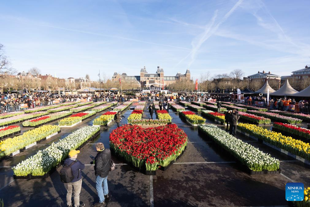 AMASTERDAM, 18 enero, 2026 (Xinhua) -- Imagen del 17 de enero de 2026 de un enorme jardín con más de 200.000 tulipanes en la Plaza de los Museos, en Amsterdam, Países Bajos. Los holandeses celebraron el Día Nacional del Tulipán, que tradicionalmente se celebra el tercer sábado del año. (Xinhua/Sylvia Lederer)
