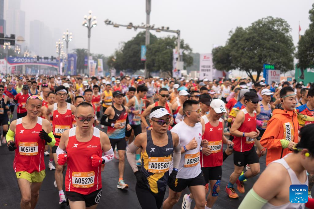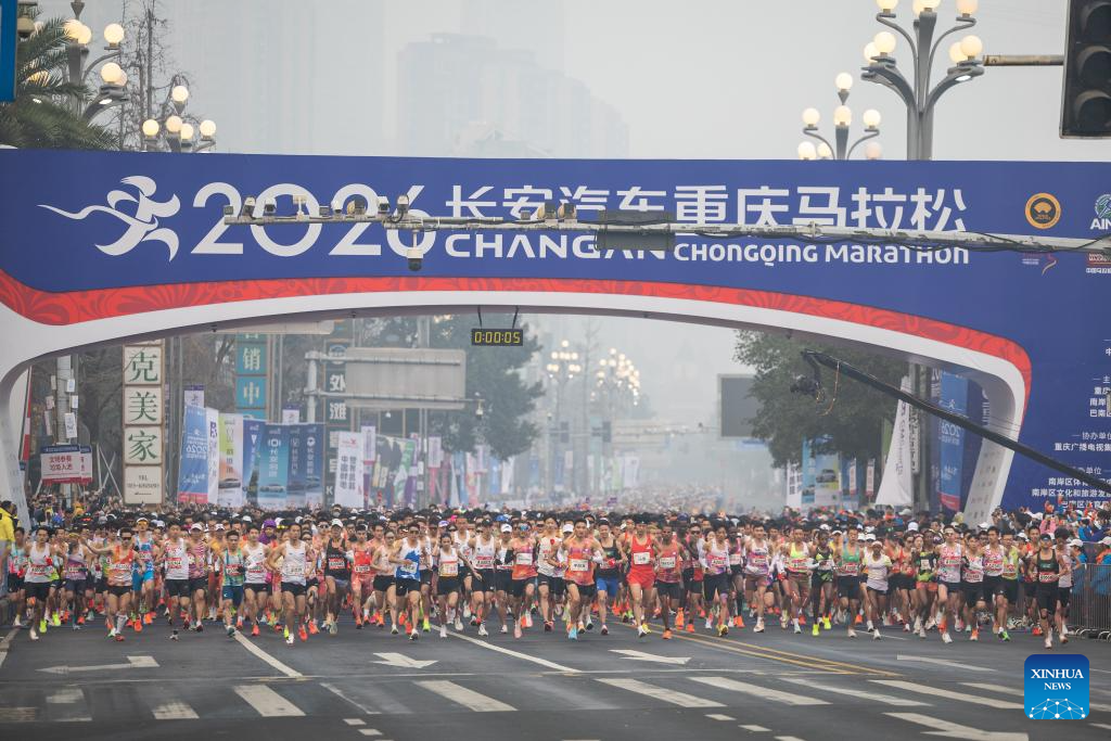 CHONGQING, 18 enero, 2026 (Xinhua) -- Corredores parten de la línea de salida durante el Maratón de Chongqing 2026, en el distrito de Nan'an de la municipalidad de Chongqing, en el suroeste de China, el 18 de enero de 2026. Unos 25.000 corredores participaron en este evento deportivo celebrado aquí el domingo. (Xinhua/Huang Wei)