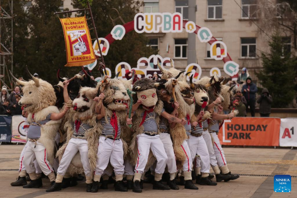 PERNIK, 18 enero, 2026 (Xinhua) -- Imagen del 17 de enero de 2026 de artistas realizando una presentación durante el Festival Internacional "Surva" de Juegos de Mascarada, celebrado en Pernik, Bulgaria. Más de 30 grupos de mascaradas de diversas partes de Bulgaria y otros países, como España, Italia y Croacia, ofrecerán al público un espectáculo visualmente impresionante y lleno de encanto cultural durante el festival, que se celebra del 16 al 25 de enero. (Xinhua/Yao Yulin)