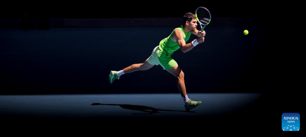 MELBOURNE, 23 enero, 2026 (Xinhua) -- Carlos Alcaraz, de España, devuelve la pelota durante el partido de tercera ronda de individuales masculinos ante Corentin Moutet, de Francia, en el torneo de tenis Abierto de Australia, en Melbourne, Australia, el 23 de enero de 2026. (Xinhua/Hu Jingchen)