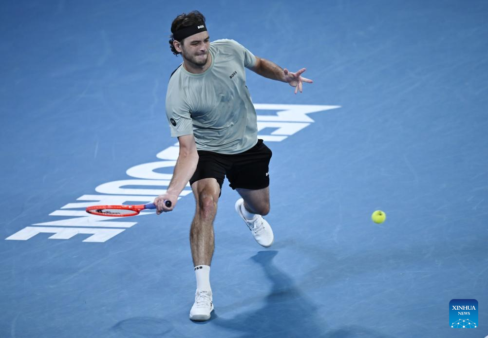 MELBOURNE, 24 enero, 2026 (Xinhua) -- Taylor Fritz devuelve la pelota durante el partido de tercera ronda de individuales masculinos entre Taylor Fritz, de Estados Unidos, y Stan Wawrinka, de Suiza, en el torneo de tenis Abierto de Australia, en Melbourne, Australia, el 24 de enero de 2026. (Xinhua/Wang Shen)