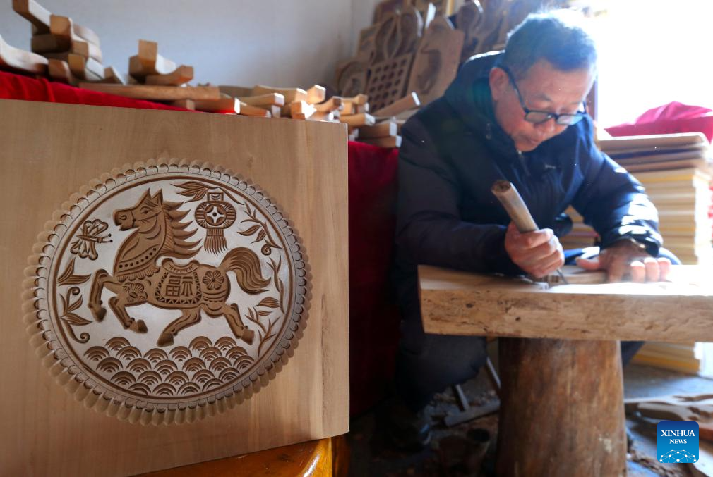 JI'NAN, 27 enero, 2026 (Xinhua) -- Imagen del 17 de enero de 2026 de un artesano fabricando artesanías de madera con temática de caballos, en el distrito de Jimo de Qingdao, en la provincia de Shandong, en el este de China. Con la llegada del Año del Caballo, una amplia gama de productos culturales con temas ecuestres, desde recuerdos de museos hasta artesanías tradicionales, están ganando popularidad en la provincia de Shandong, en el este de China. (Xinhua/Liang Xiaopeng)