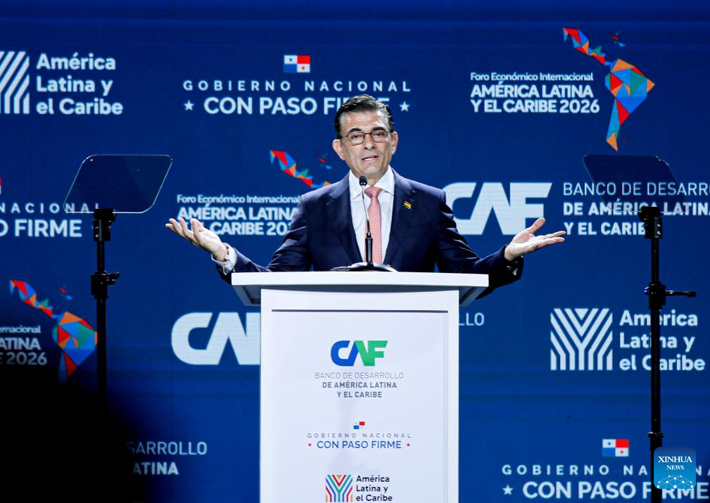 CIUDAD DE PANAMA, 28 enero, 2026 (Xinhua) -- El presidente ejecutivo del Banco de Desarrollo de América Latina y el Caribe (CAF), Sergio Díaz-Granados pronuncia un discurso durante el Foro Económico Internacional América Latina y el Caribe 2026 del CAF, en la Ciudad de Panamá, capital de Panamá, el 28 de enero de 2026. El Foro Económico Internacional América Latina y el Caribe 2026 del CAF se desarrolla en Panamá y cuenta con la participación de mandatarios y delegaciones de distintos países de América Latina y el Caribe, en un contexto marcado por la búsqueda de nuevas estrategias de cooperación e inserción regional en la economía global. (Xinhua/Daniel González)