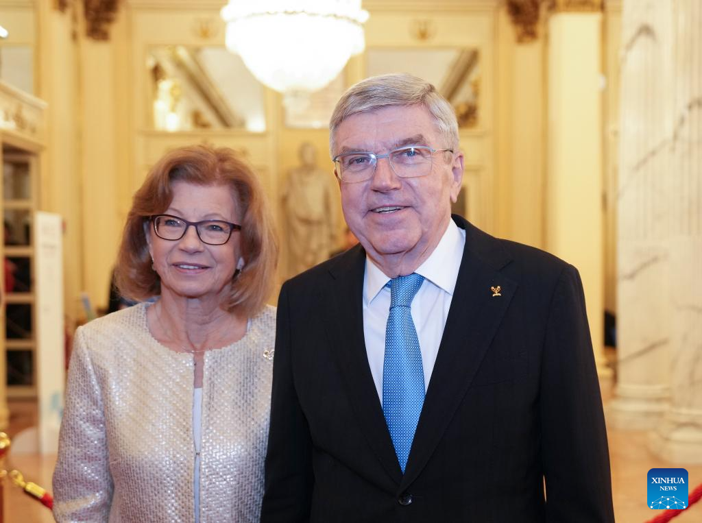 MILAN, 2 febrero, 2026 (Xinhua) -- El expresidente del Comité Olímpico Internacional (COI), Thomas Bach (d) y su esposa Claudia Bach llegan a la ceremonia de apertura de la Sesión 145 del COI, en el Teatro La Scala, en Milán, Italia, el 2 de febrero de 2026. (Xinhua/Sun Fei)