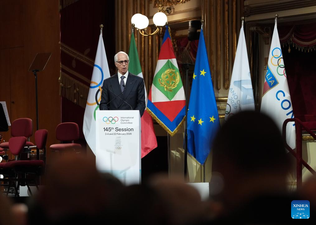 MILAN, 2 febrero, 2026 (Xinhua) -- Luciano Buonfiglio, presidente del Comité Olímpico Nacional Italiano (CONI), pronuncia un discurso durante la ceremonia de apertura de la Sesión 145 del Comité Olímpico Internacional (COI), en el Teatro La Scala, en Milán, Italia, el 2 de febrero de 2026. (Xinhua/Sun Fei)