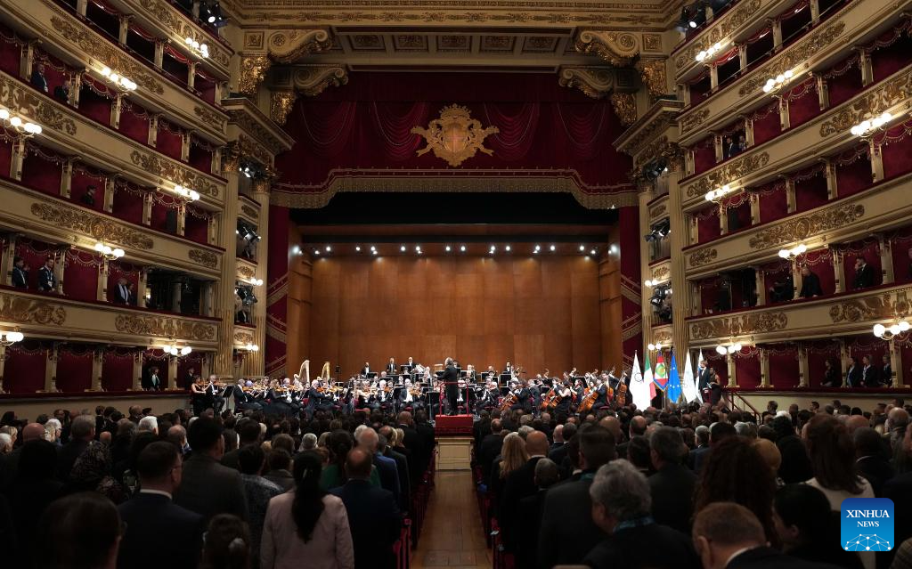 MILAN, 2 febrero, 2026 (Xinhua) -- Imagen del 2 de febrero de 2026 de la vista general de la ceremonia de apertura de la Sesión 145 del Comité Olímpico Internacional, en el Teatro La Scala, en Milán, Italia. (Xinhua/Sun Fei)