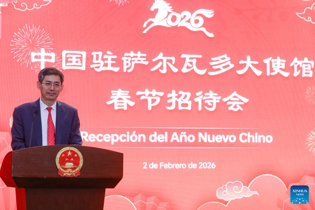 SAN SALVADOR, 3 feb (Xinhua) -- A pocos días del inicio del Año Nuevo chino del calendario lunar, la Embajada de China en El Salvador ofreció el lunes una recepción conmemorativa que reunió a autoridades salvadoreñas, cuerpo diplomático, empresarios y miembros de la comunidad china, en un ambiente de intercambio cultural y de celebración de la amistad bilateral.