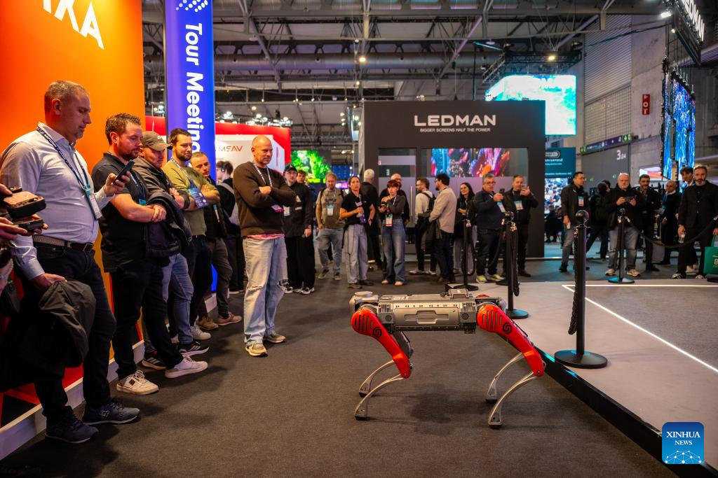 BARCELONA, 3 febrero, 2026 (Xinhua) -- Personas observan un robot en exhibición durante la Integrated Systems Europe (ISE, por sus siglas en inglés) 2026, en Barcelona, España, el 3 de febrero de 2026. (Xinhua/Joan Gosa)