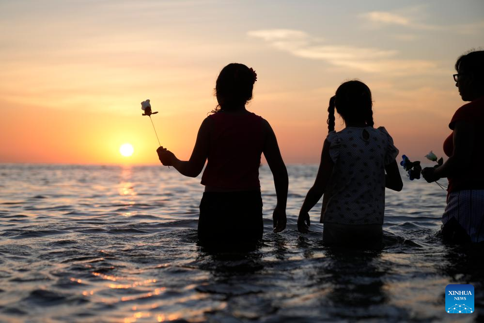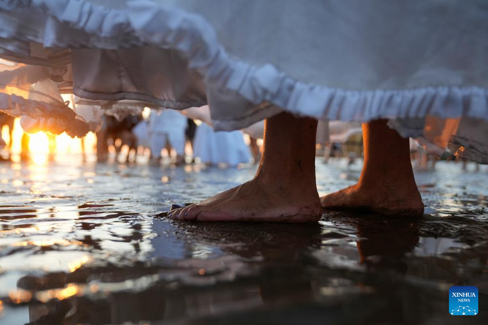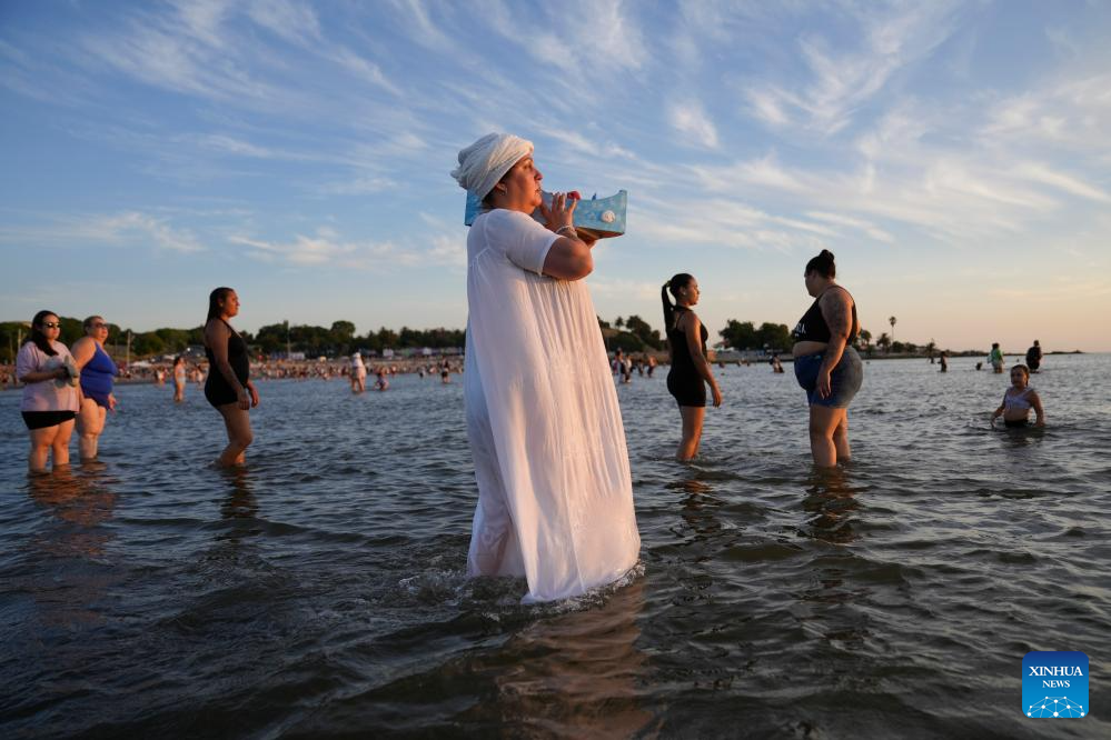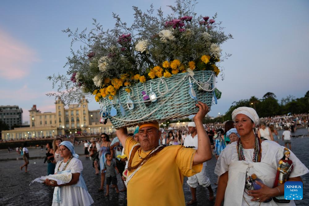 MONTEVIDEO, 3 febrero, 2026 (Xinhua) -- Imagen del 2 de febrero de 2026 de personas participando durante la celebración de Iemanjá, en la playa Ramírez, en Montevideo, capital de Uruguay. (Xinhua/Nicolás Celaya)
