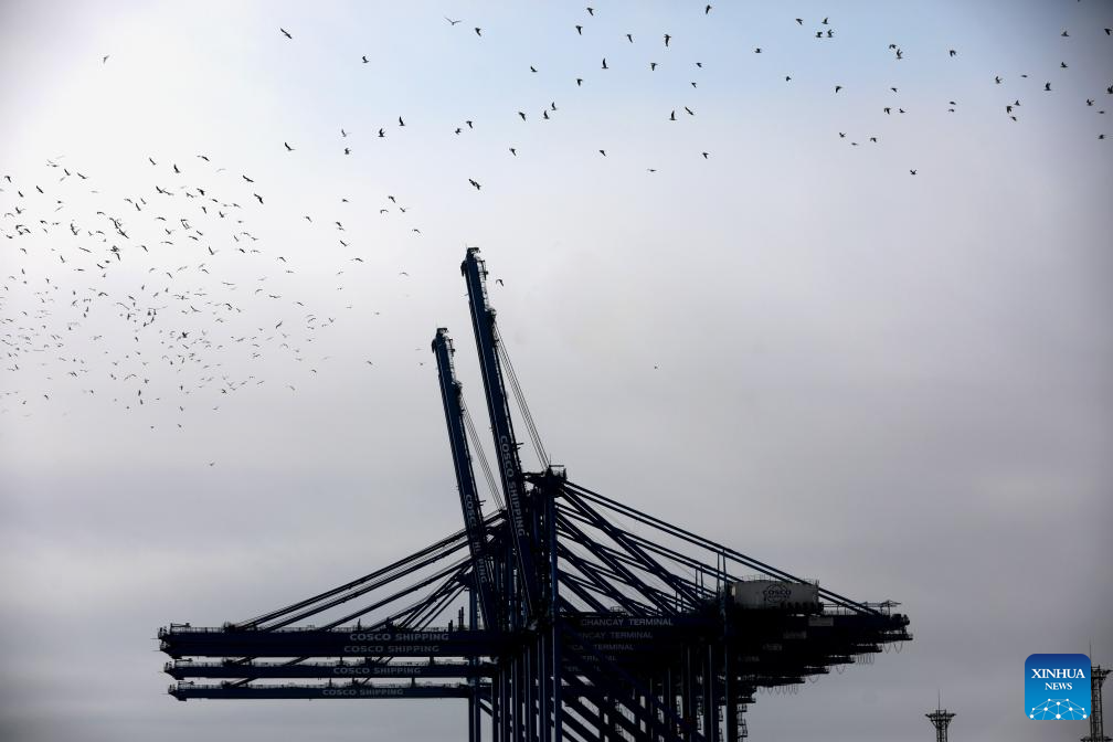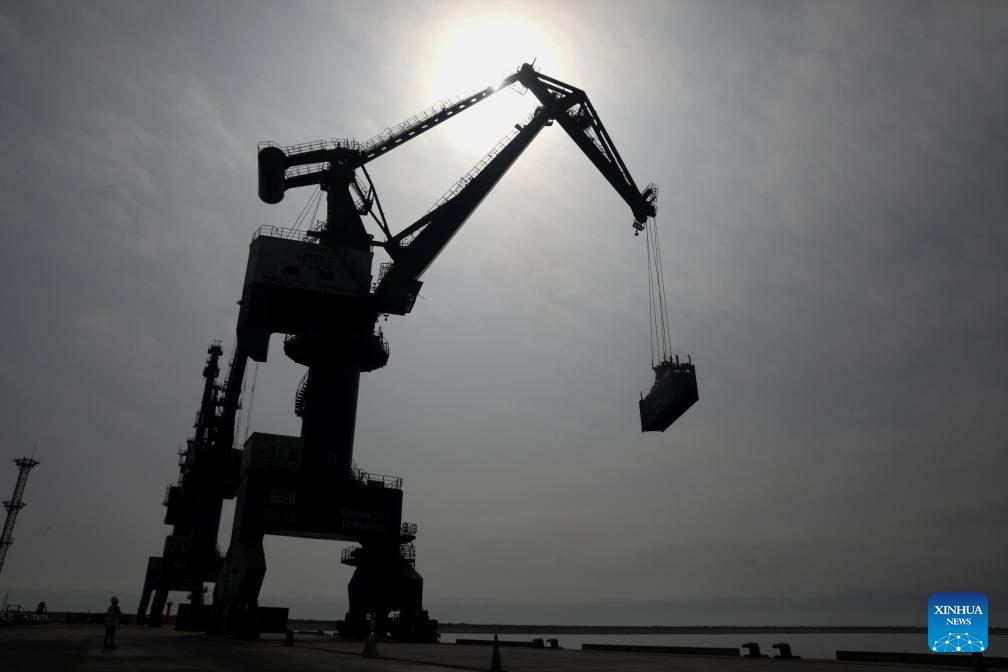 CHANCAY, 5 febrero, 2026 (Xinhua) -- Imagen del 2 de diciembre de 2025 de grúas en el puerto de Chancay, en Chancay, Perú. Las exportaciones de Perú a China se vieron potenciadas en 2025 debido a la puesta en marcha del puerto de Chancay, infraestructura que ha comenzado a generar un impacto en la conectividad logística del país andino hacia el mercado asiático, aseguró el jueves a Xinhua el experto peruano Juan Carlos Paz. (Xinhua/Mariana Bazo)