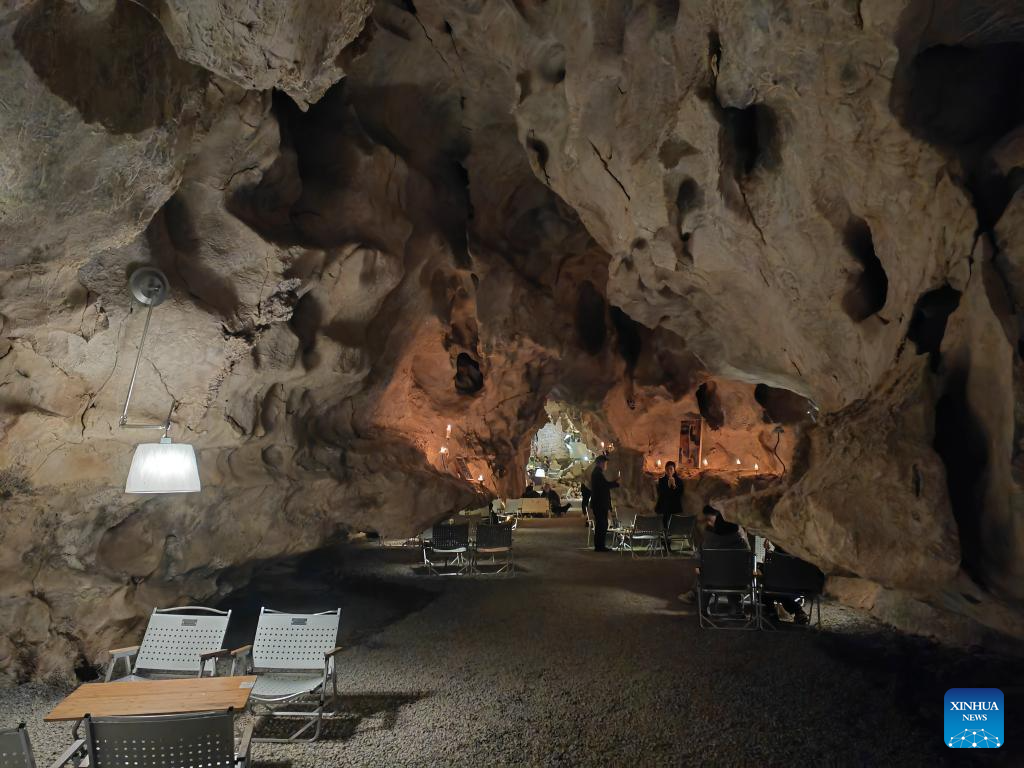 GUIYANG, 5 febrero, 2026 (Xinhua) -- Imagen del 23 de julio de 2025 del interior del Xiu Café, una cafetería construida dentro de una cueva kárstica natural, en el distrito de Xiuwen, en la provincia de Guizhou, en el suroeste de China. Ubicada a 45 minutos en automóvil del centro de Guiyang, esta cafetería con temática de cueva se ha convertido en un imán para los habitantes de la ciudad que buscan una escapada de fin de semana. (Xinhua/Wu Si)