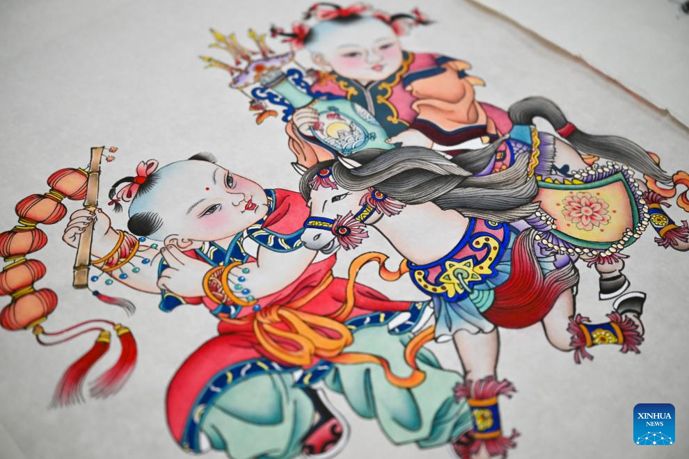 TIANJIN, 5 febrero, 2026 (Xinhua) -- Imagen del 4 de febrero de 2026 de una pintura del Año Nuevo chino con temática de caballos en la Editorial de Bellas Artes de Yangliuqing de Tianjin, en Tianjin, en el norte de China. Para celebrar el próximo Año del Caballo, la Editorial de Bellas Artes de Yangliuqing de Tianjin lanzó una serie de pinturas de Año Nuevo con temática de caballos, integrando técnicas tradicionales de pintura de Año Nuevo con diseño moderno. (Xinhua/Sun Fanyue)