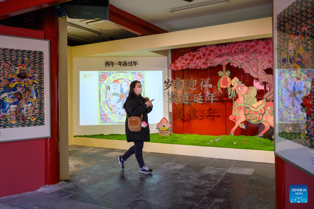 BEIJING, 5 febrero, 2026 (Xinhua) -- Imagen del 4 de febrero de 2026 de una mujer visitando una exposición de pinturas del Año Nuevo chino en el Museo del Palacio del Príncipe Kung, en Beijing, capital de China. Una exposición que muestra más de cien exquisitas pinturas del Año Nuevo chino recopiladas por el Museo del Palacio del Príncipe Kung se inauguró aquí el miércoles. (Xinhua/Jin Liangkuai)