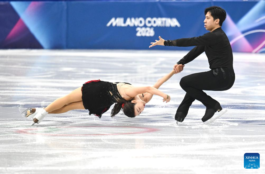 MILAN, 6 febrero, 2026 (Xinhua) -- Sui Wenjing (i) y Han Cong, de China, se presentan durante el programa corto de patinaje en parejas de la prueba por equipos de patinaje artístico de los Juegos Olímpicos de Invierno Milán-Cortina 2026, en Milán, Italia, el 6 de febrero de 2026. (Xinhua/Chen Yichen)