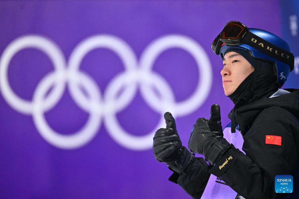 LIVIGNO, 7 febrero, 2026 (Xinhua) -- Su Yiming, de China, reacciona durante la final de Big Air masculino de Snowboard en los Juegos Olímpicos de Invierno Milán-Cortina 2026, en Livigno, Italia, el 7 de febrero de 2026. (Xinhua/Zhang Hongxiang)
