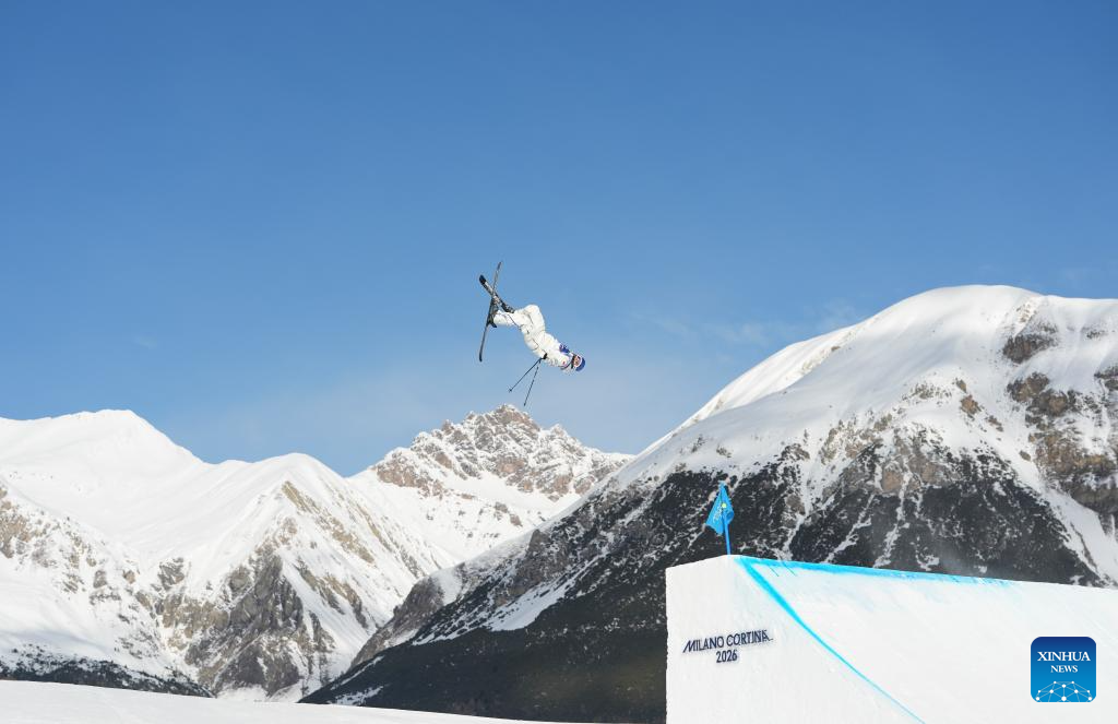 LIVIGNO, 7 febrero, 2026 (Xinhua) -- Gu Ailing, de China, compite durante la calificación de esquí acrobático slopestyle femenino de esquí estilo libre de los Juegos Olímpicos de Invierno Milán-Cortina 2026, en Livigno, Italia, el 7 de febrero de 2026. (Xinhua/Wu Huiwo)
