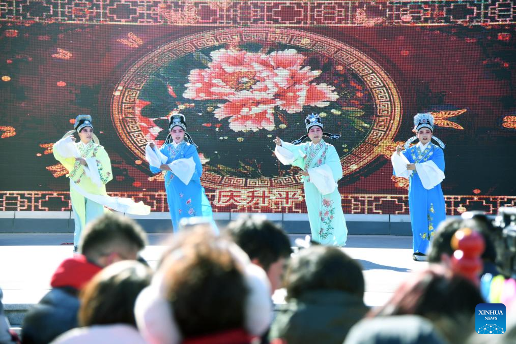 BEIJING, 8 febrero, 2026 (Xinhua) -- Imagen del 7 de febrero de 2026 de artistas presentando un espectáculo para dar la bienvenida a la Fiesta de la Primavera, en el distrito de Pinggu de Beijíng, capital de China. A medida que se acerca la Fiesta de la Primavera, se celebran en todo el país diversas actividades que reflejan tradiciones ancestrales, llenando el ambiente de gran entusiasmo. (Xinhua/Ren Chao)