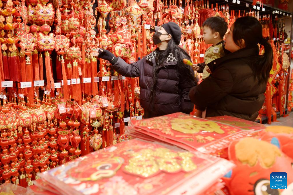 BEIJING, 8 febrero, 2026 (Xinhua) -- Imagen del 7 de febrero de 2026 de personas seleccionando decoraciones para la Fiesta de la Primavera, en la ciudad de Hebi, en la provincia de Henan, en el centro de China. A medida que se acerca la Fiesta de la Primavera, se celebran en todo el país diversas actividades que reflejan tradiciones ancestrales, llenando el ambiente de gran entusiasmo. (Xinhua/Zhao Yongqiang)