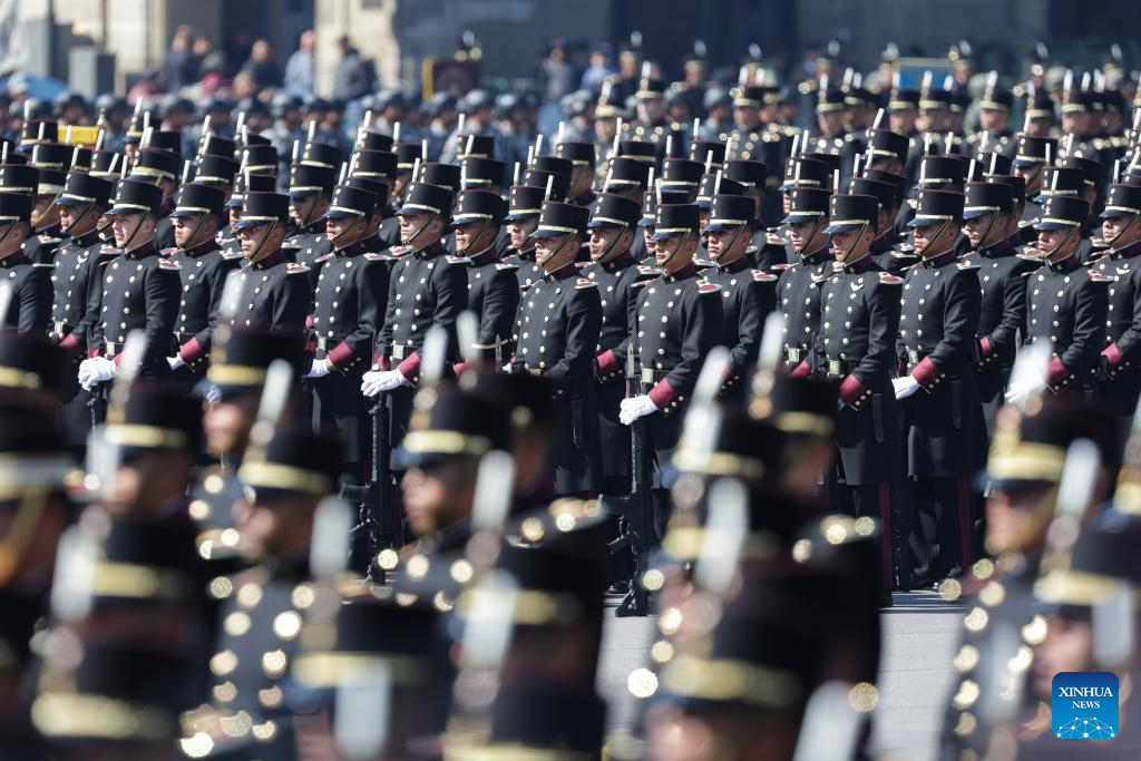 CIUDAD DE MEXICO, 9 febrero, 2026 (Xinhua) -- Elementos del Ejército mexicano participan en los actos conmemorativos por el 113 Aniversario de la Marcha de la Lealtad, en el Zócalo de la Ciudad de México, capital de México, el 9 de febrero de 2026. (Xinhua/Francisco Cañedo)