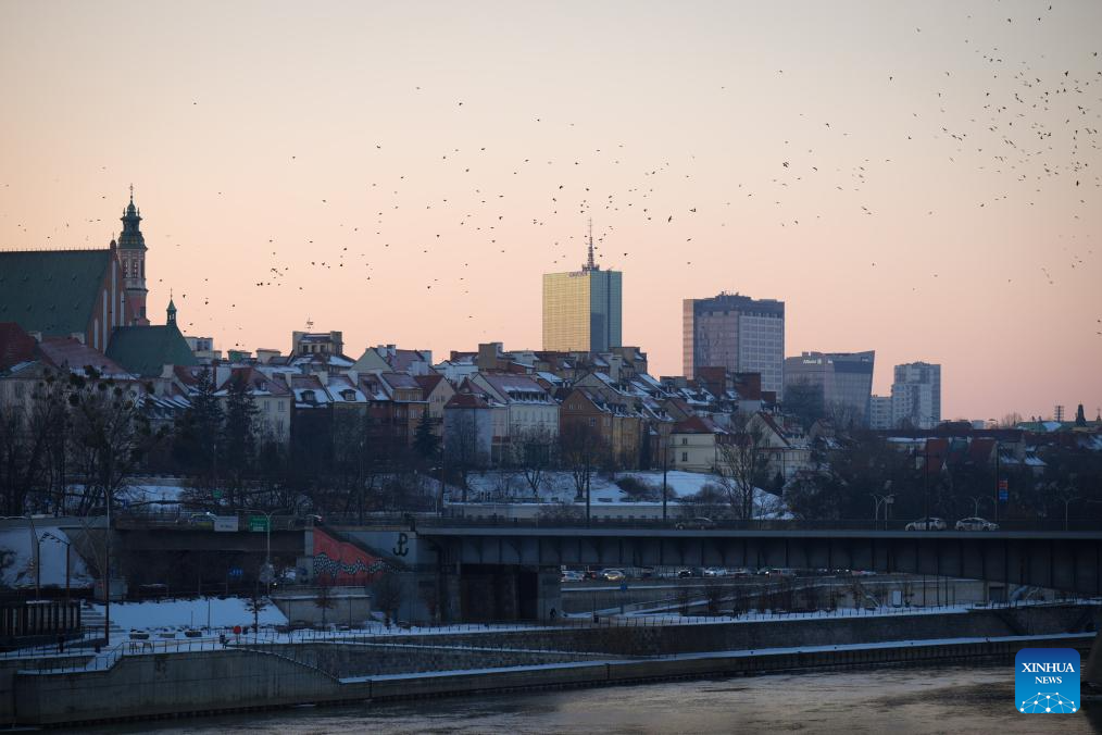 VARSOVIA, 10 febrero, 2026 (Xinhua) -- Imagen del 9 de febrero de 2026 de edificios de la Ciudad Vieja vistos con rascacielos modernos al fondo en el atardecer, en Varsovia, Polonia. (Xinhua/Jaap Arriens)