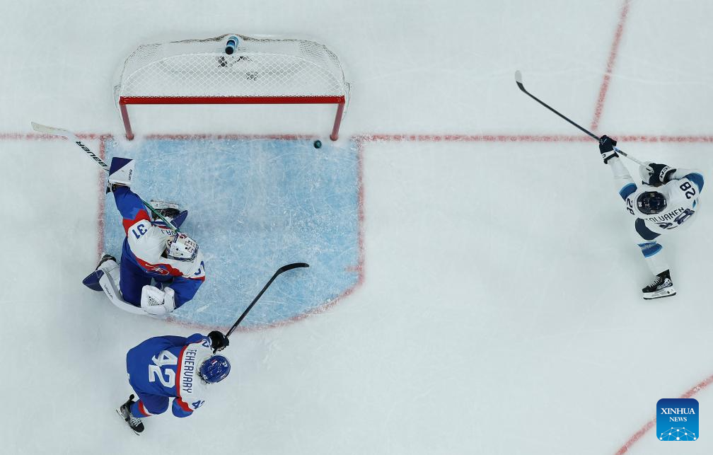 MILAN, 11 febrero, 2026 (Xinhua) -- Milos Kelemen (c), de Eslovaquia, se abre paso durante el partido del grupo B de la ronda preliminar masculina entre Finlandia y Eslovaquia de hockey sobre hielo en los Juegos Olímpicos de Invierno Milán-Cortina 2026, en Milán, Italia, el 11 de febrero de 2026. (Xinhua/Wang Kaiyan)