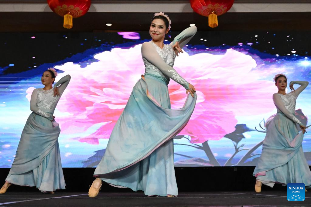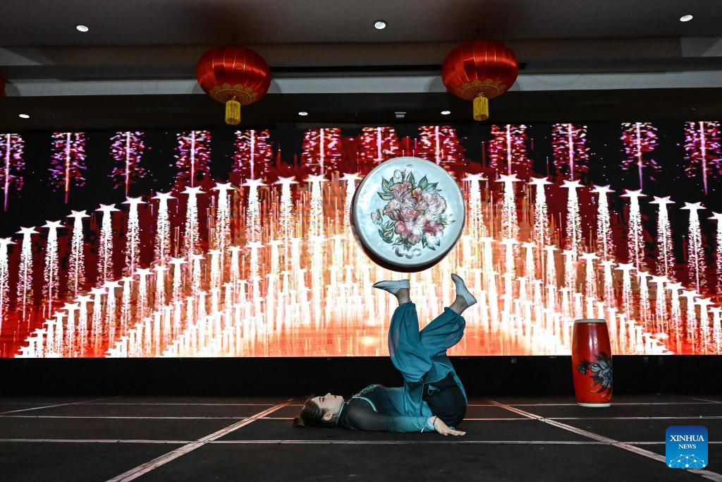 SANTIAGO, 11 febrero, 2026 (Xinhua) -- Imagen del 10 de febrero de 2026 de una artista realizando una presentación durante una recepción organizada por la embajada china en Chile con motivo de la llegada del Año Nuevo chino, en Santiago, capital de Chile. Autoridades y representantes de empresas, gremios e instituciones educativas de Chile y China celebraron el martes la inminente llegada del Año Nuevo chino, en una recepción organizada por la embajada china en el país austral, para dar la bienvenida al Año del Caballo del horóscopo tradicional chino. (Xinhua/Jorge Villegas)