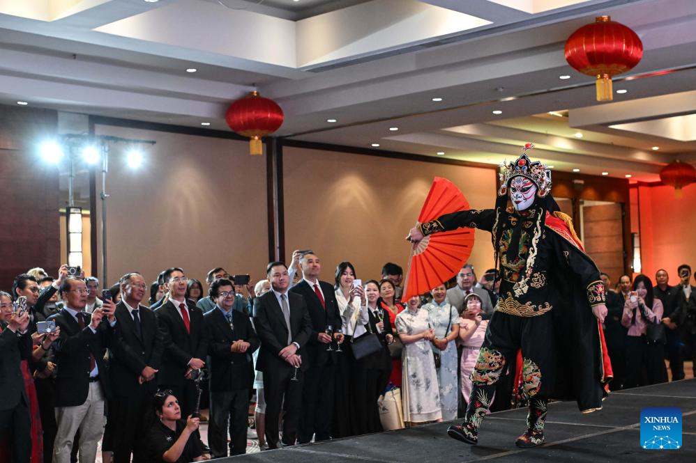 SANTIAGO, 11 febrero, 2026 (Xinhua) -- Imagen del 10 de febrero de 2026 de un artista realizando una presentación durante una recepción organizada por la embajada china en Chile con motivo de la llegada del Año Nuevo chino, en Santiago, capital de Chile. Autoridades y representantes de empresas, gremios e instituciones educativas de Chile y China celebraron el martes la inminente llegada del Año Nuevo chino, en una recepción organizada por la embajada china en el país austral, para dar la bienvenida al Año del Caballo del horóscopo tradicional chino. (Xinhua/Jorge Villegas)