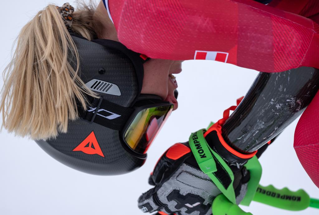 CORTINA D'AMPEZZO, 12 febrero, 2026 (Xinhua) -- Cornelia Huetter, de Austria, reacciona al término del super-G femenino de esquí alpino en los Juegos Olímpicos de Invierno Milán-Cortina 2026, en Cortina D'Ampezzo, Italia, el 12 de febrero de 2026. (Xinhua/Fei Maohua)