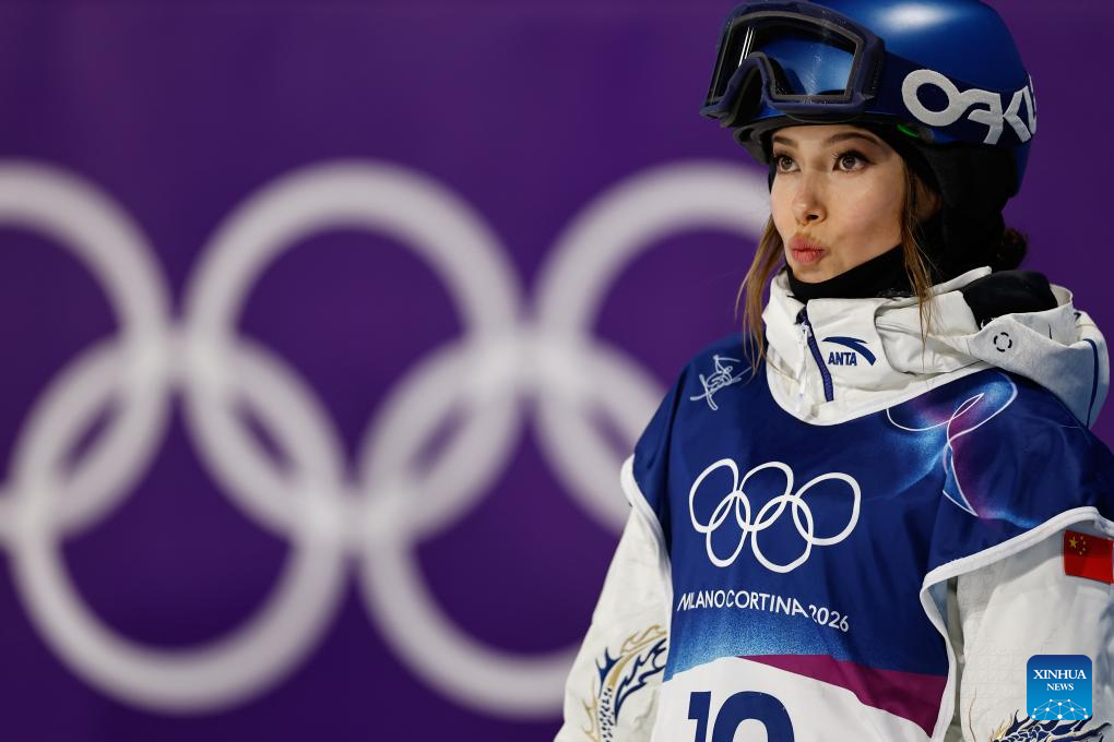 LIVIGNO, 14 febrero, 2026 (Xinhua) -- Gu Ailing, de China, compite durante la clasificación de Big Air femenino de esquí acrobático en los Juegos Olímpicos de Invierno Milán-Cortina 2026, en Livigno, Italia, el 14 de febrero de 2026. (Xinhua/Zhang Hongxiang)