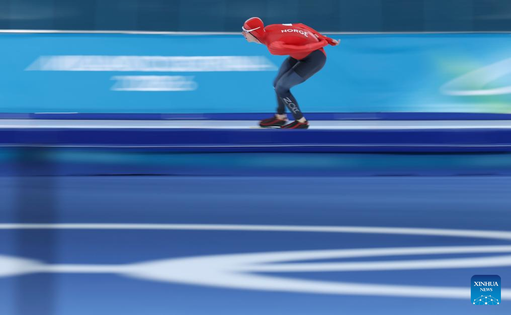 MILAN, 14 febrero, 2026 (Xinhua) -- Imagen del 13 de febrero de 2026 de Sander Eitrem, de Noruega, compitiendo durante el evento de 10000 m masculinos de patinaje de velocidad en los Juegos Olímpicos de Invierno Milán-Cortina 2026, en Milán, Italia. (Xinhua/Li Jing)