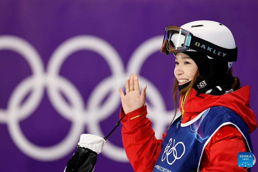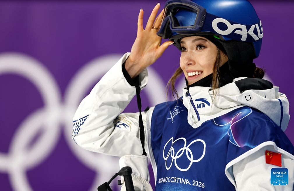LIVIGNO, 14 febrero, 2026 (Xinhua) -- Gu Ailing, de China, saluda durante la clasificación de Big Air femenino de esquí acrobático en los Juegos Olímpicos de Invierno Milán-Cortina 2026, en Livigno, Italia, el 14 de febrero de 2026. (Xinhua/Hu Chao)