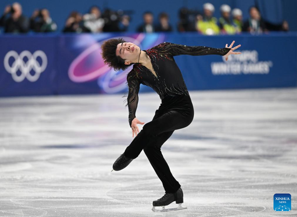 MILAN, 14 febrero, 2026 (Xinhua) -- Imagen del 13 de febrero de 2026 de Kagiyama Yuma, de Japón, realizando una presentación durante el programa libre de patinaje individual masculino de patinaje artístico en los Juegos Olímpicos de Invierno Milán-Cortina 2026, en Milán, Italia. (Xinhua/Li Ming)