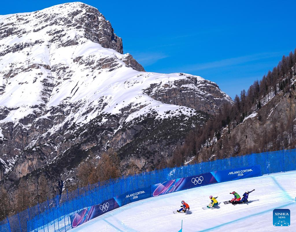LIVIGNO, 14 febrero, 2026 (Xinhua) -- (De izq. a der.) Imagen del 13 de febrero de 2026 de Eva Adamczykova, de República Checa, Josie Baff, de Australia, Sina Siegenthaler, de Suiza, y Charlotte Bankes, de Reino Unido, compitiendo durante los cuartos de final de cross femenino de snowboard en los Juegos Olímpicos de Invierno Milán-Cortina 2026, en Livigno, Italia. (Xinhua/Wu Huiwo)