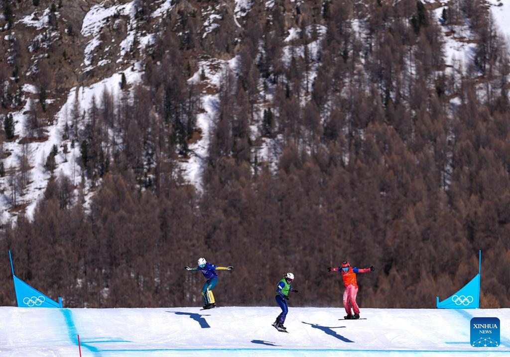 LIVIGNO, 14 febrero, 2026 (Xinhua) -- Imagen del 13 de febrero de 2026 de Abbey Wilson (i), de Australia, Charlotte Bankes (c), de Reino Unido, y Sina Siegenthaler, de Suiza, compitiendo durante los octavos de final de cross femenino de snowboard en los Juegos Olímpicos de Invierno Milán-Cortina 2026, en Livigno, Italia. (Xinhua/Wu Huiwo)