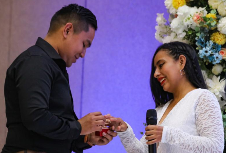 MILAN, 14 febrero, 2026 (Xinhua) -- Un aficionado eslovaco le pide matrimonio a su novia durante el partido del grupo B de la ronda preliminar masculina entre Suecia y Eslovaquia de hockey sobre hielo en los Juegos Olímpicos de Invierno Milán-Cortina 2026, en Milán, Italia, el 14 de febrero de 2026. (Xinhua/Tao Xiyi)