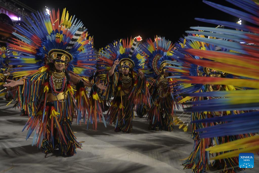 RÍO DE JANEIRO, 16 feb (Xinhua) -- La primera noche de desfiles del Carnaval de Río de Janeiro transformó el Sambódromo en un río de luz, música y emoción que pareció no tener orillas.