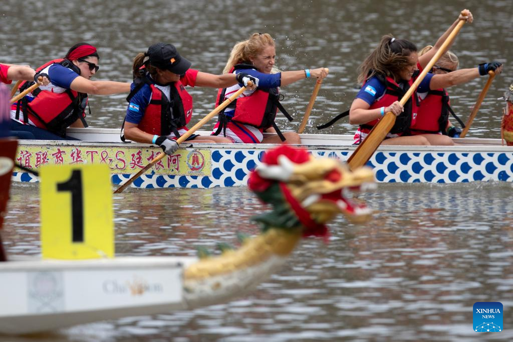 BUENOS AIRES, 16 febrero, 2026 (Xinhua) -- Imagen del 15 de febrero de 2026 de personas participando en una carrera de botes del dragón para celebrar el Año Nuevo chino, en Buenos Aires, Argentina. Los botes dragón concitaron el domingo la atención del público que se acercó a ver el espectáculo en el Dique 1 de Puerto Madero, Buenos Aires, la capital de Argentina. La actividad fue organizada por la Asociación de Botes Dragón, en el marco de los festejos previos al Año Nuevo chino que, desde este próximo martes 17 de febrero, estará regido por el Caballo en el calendario lunar. (Xinhua/Zhang Duo)