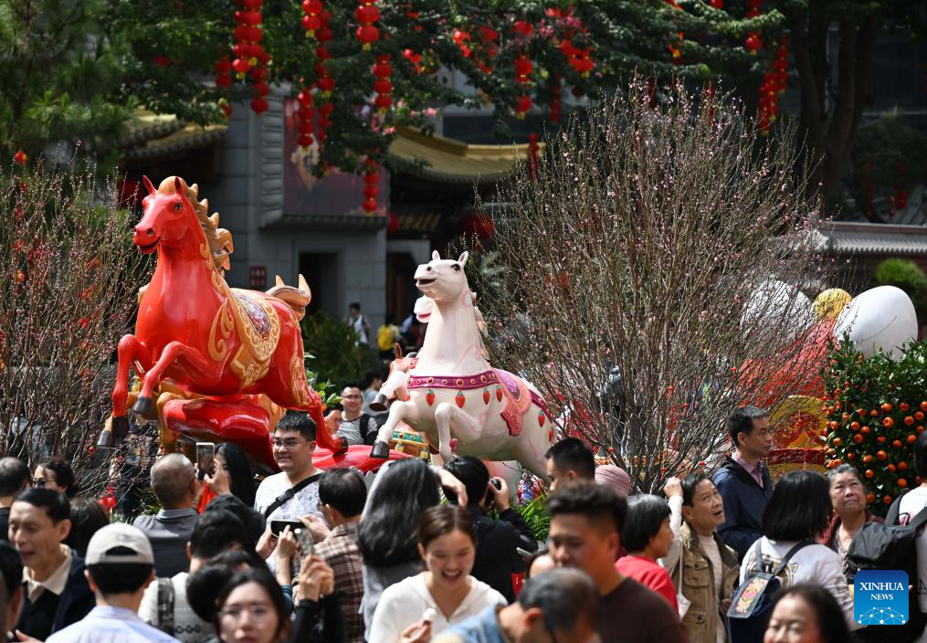 GUANGZHOU, 15 febrero, 2026 (Xinhua) -- Personas visitan un mercado de flores, en el distrito de Yuexiu, en Guangzhou, en la provincia de Guangdong, en el sur de China, el 15 de febrero de 2026. China está llena de vibrantes celebraciones con el Festival de la Primavera a la vuelta de la esquina. (Xinhua/Deng Hua)