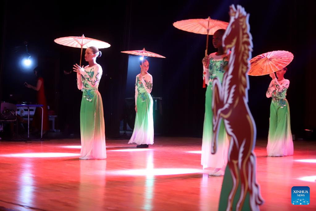PRAIA, 15 febrero, 2026 (Xinhua) -- Imagen del 14 de febrero de 2026 de artistas bailando durante una gala del Año Nuevo chino en el Auditorio Nacional, en Praia, capital de Cabo Verde. (Xinhua/Elton Monteiro)