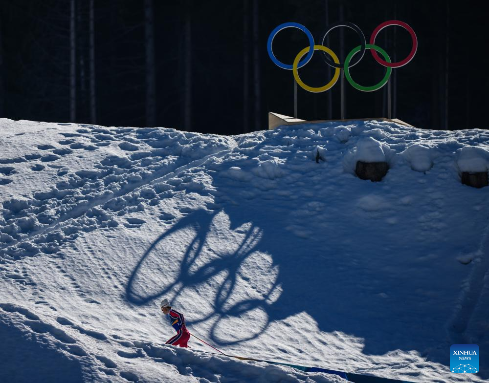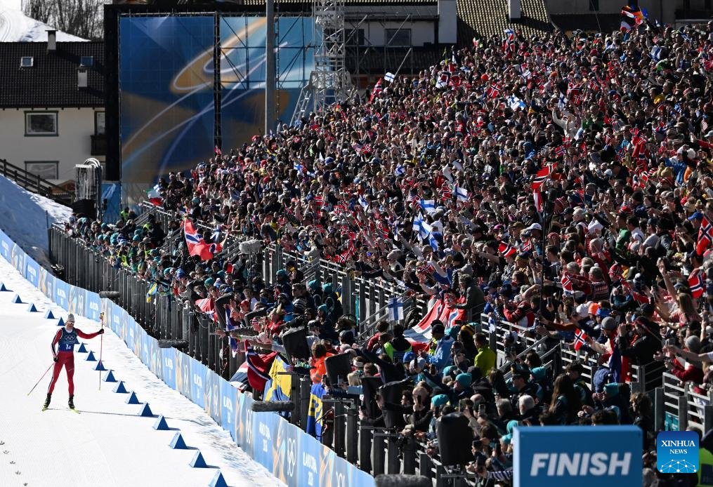 TESERO, 15 febrero, 2026 (Xinhua) -- Johannes Hoesflot Klaebo, de Noruega, compite durante el relevo 4x7,5 km masculino de esquí de fondo en los Juegos Olímpicos de Invierno Milán-Cortina 2026, en Tesero, Italia, el 15 de febrero de 2026. (Xinhua/He Canling)